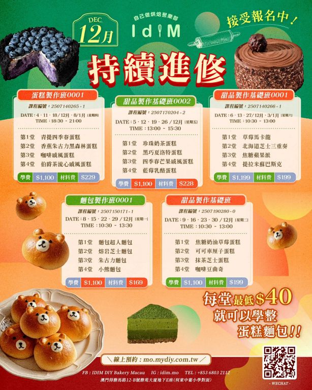3. 一份甜品若2人製作,第二位須付$120共做費。