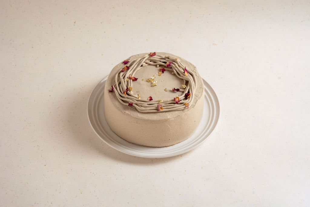 ●裝飾:焙茶鮮奶油、食用乾燥玫瑰花瓣、金箔